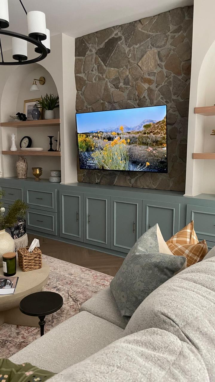 The basalt gives a modern and elegant look, while the oak shelves provide durability and an attractive natural character.
